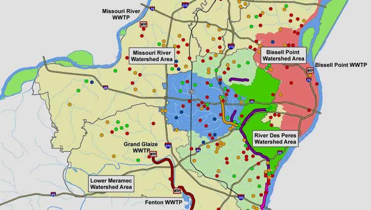 MSD begins operations in January, serving the City of St. Louis and the portion of St. Louis County located east of Interstate 270.
