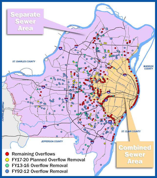 MSD Project Clear primarily addresses the sewer overflows that remain from our region’s separate and combined sewers – see how much progress we’ve already made to remove and alleviate these overflows.