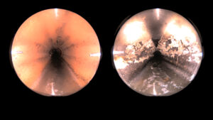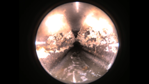 This is footage from inside a sewer pipe showing about 15 seconds of clean pipe and 45 seconds of pipe that has been clogged by Fats, Oils and Grease. This is a great visual to go along with the web copy below or posting on social media with a brief description of how FOG clogs pipes.