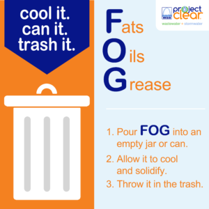 Fats, Oils, and Grease (FOG) belong in the trash, not down the drain.