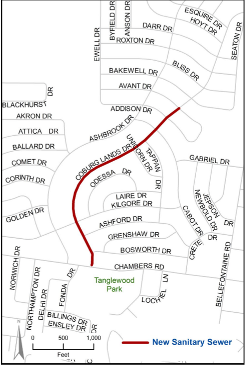 As part of a long-term effort to reduce basement backups and sewer overflows, MSD Project Clear is replacing approximately 3,500 feet of sewer in the City of Bellefontaine Neighbors. MSD Project Clear will increase the size of the wastewater sewer which will reduce basement backups and prevent sewer overflows in this area.