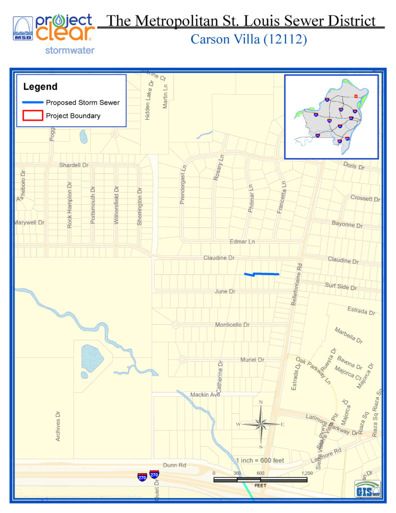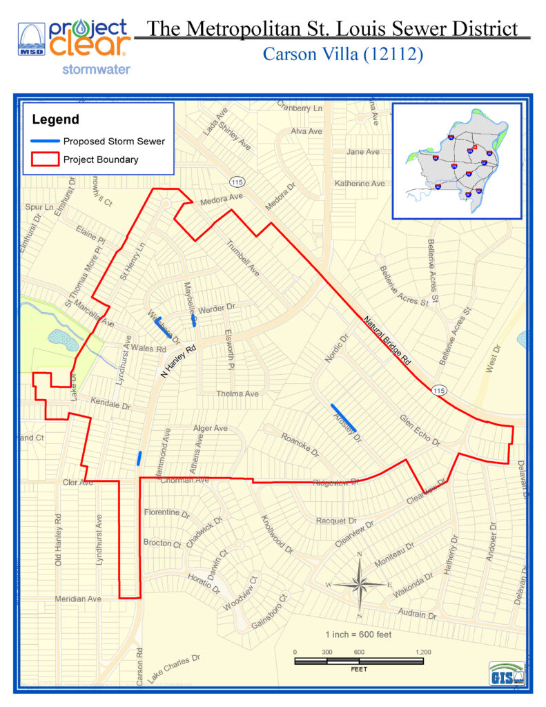 As part of a long-term effort to reduce basement backups and sewer overflows, MSD Project Clear is constructing approximately 3,272 feet of sewer in the Cities of Bel-Ridge and Bel-Nor, and in the Spanish Lake area. MSD Project Clear will increase the size of the stormwater sewer which will reduce basement backups and prevent sewer overflows in this area.