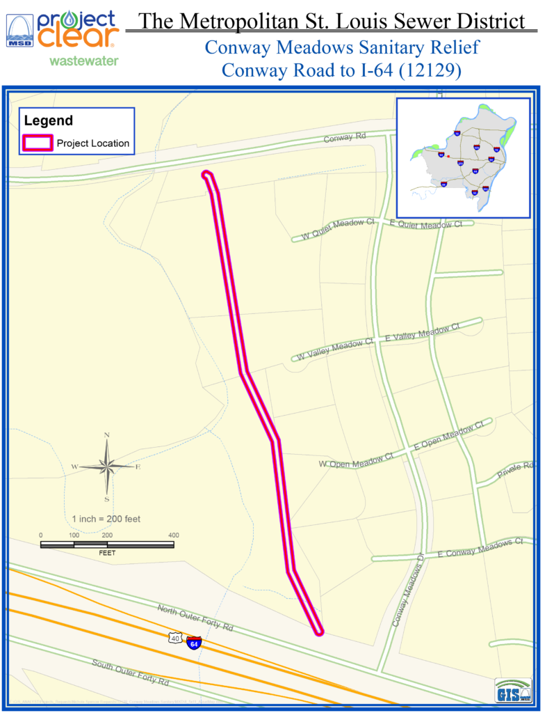 As part of a long-term effort to reduce basement backups and sewer overflows, MSD Project Clear is constructing a project to replace approximately 1,400 feet of undersized wastewater sewers in the City of Chesterfield.