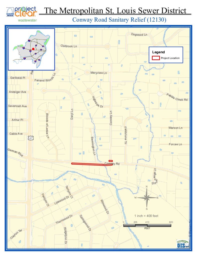 Traffic and Access: As much of the construction will take place in the street, residents should expect temporary lane closures on Conway Road. MSD Project Clear will maintain at least one lane of traffic at all times to allow residents to enter and exit.