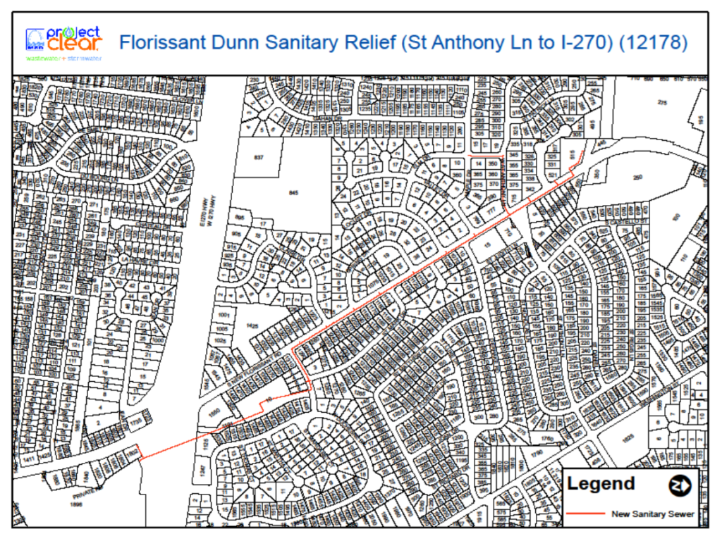 As part of a long-term effort to reduce basement backups, MSD Project Clear is constructing approximately 6,170 feet of wastewater sewer in the City of Florissant. The Florissant/Dunn Santiary Relief project will increase the size of the wastewater sewer which will reduce instances of basement backups.