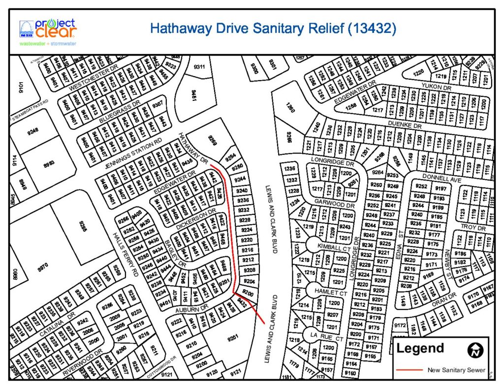 As part of a long-term effort to reduce basement backups and sewer overflows, MSD Project Clear is constructing a project to replace undersized sewers in the City of Jennings on Hathaway Drive between Jennings Station Road and Lewis and Clark Blvd.