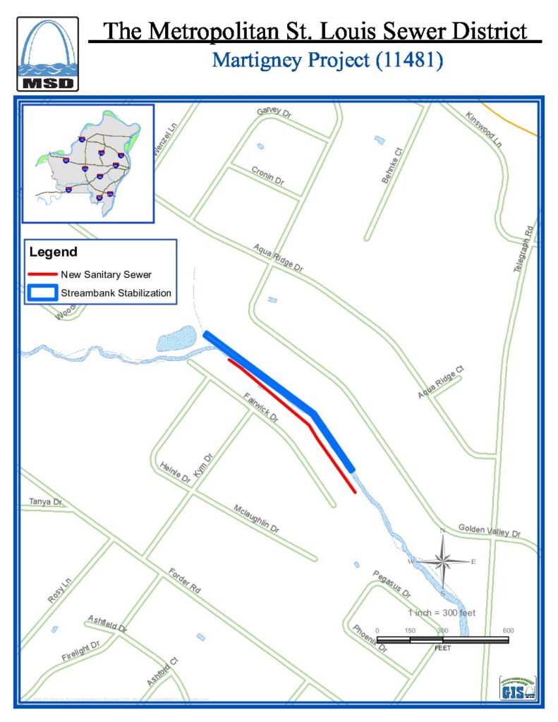 As part of a long-term effort to reduce basement backups, sewer overflows, and to improve creek bank stabilization, MSD Project Clear is constructing a project to replace approximately 458 feet of sewer and stabilize approximately 768 feet of a natural creek in South St. Louis County.