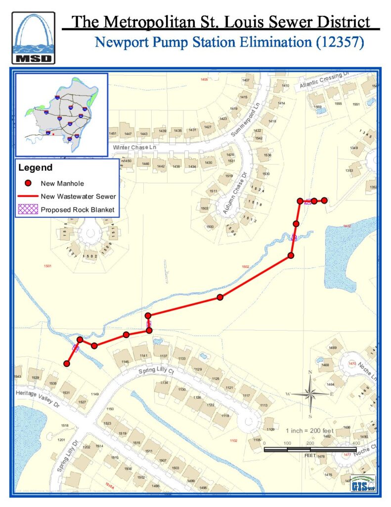 MSD Project Clear is investing approximately $553,000 to improve the wastewater service in the St. Louis County. The goal of this project is to remove one pump station and enable the sewer to flow using gravity rather than a pressurized pipe. This will result in more reliable sewer service for customers in this area.