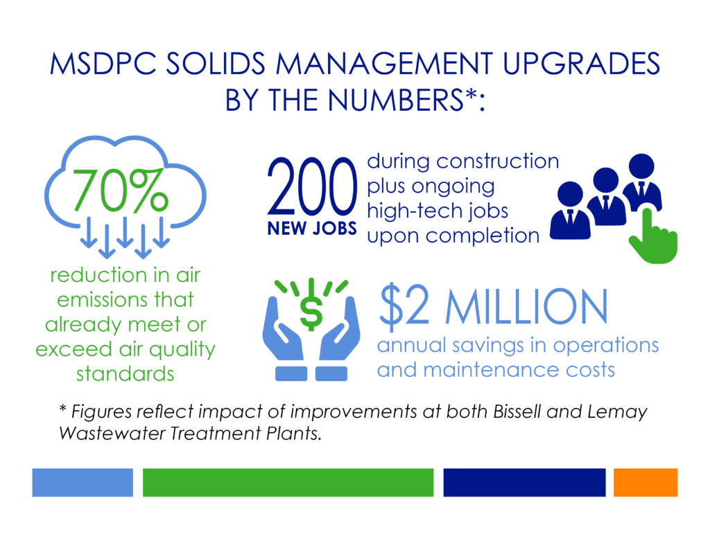 MSD Project Clear (MSDPC) is making a significant investment to improve air quality in the St. Louis region by updating the biosolids facilities at the Bissell Point and Lemay Wastewater Treatment Plants.