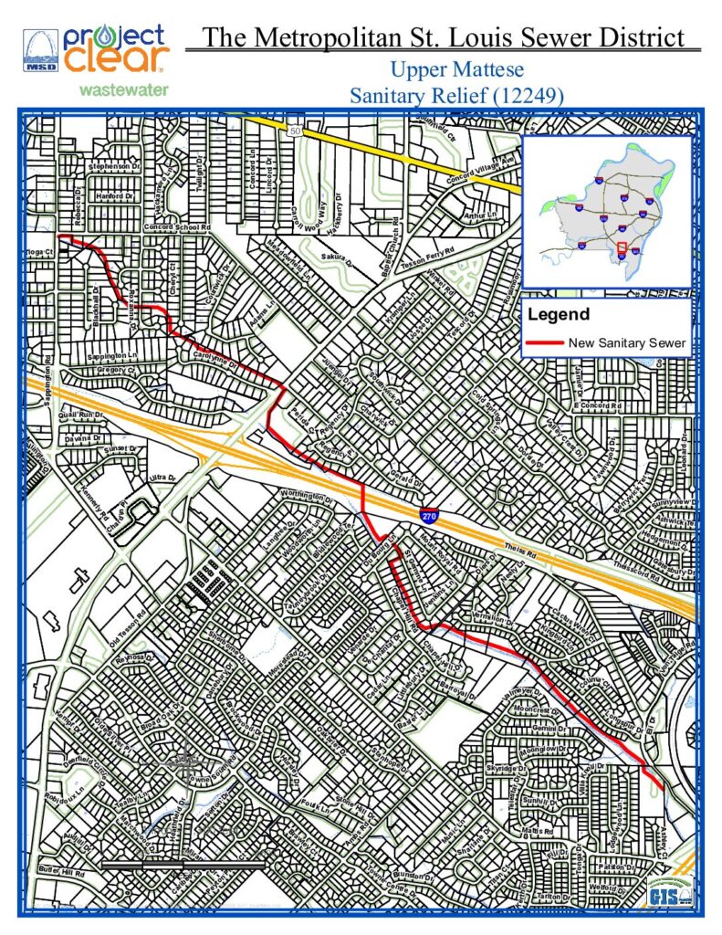 As part of a long-term effort to reduce basement backups and sewer overflows, MSD Project Clear is constructing a project to replace approximately 14,000 feet of undersized wastewater sewers and construct approximately 400 feet of creek bank stabilization in unincorporated St. Louis County.