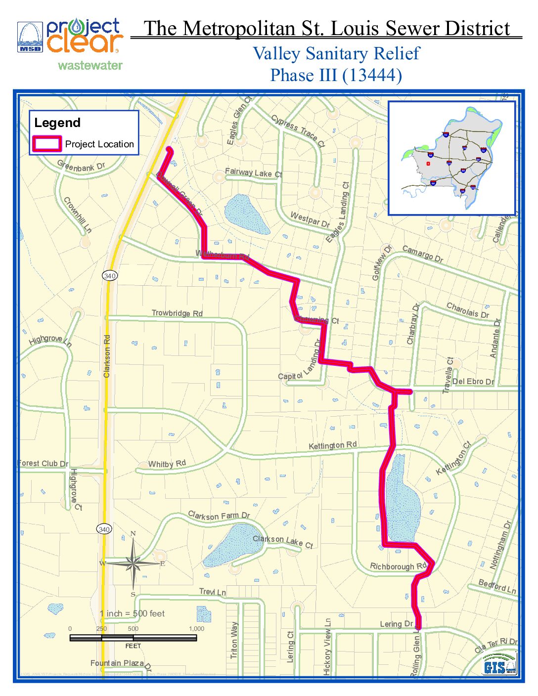 As part of a long-term effort to reduce basement backups and sewer overflows, MSD Project Clear is constructing a project to replace approximately 5,500 feet of undersized wastewater sewers in the cities of Clarkson Valley and Ballwin.