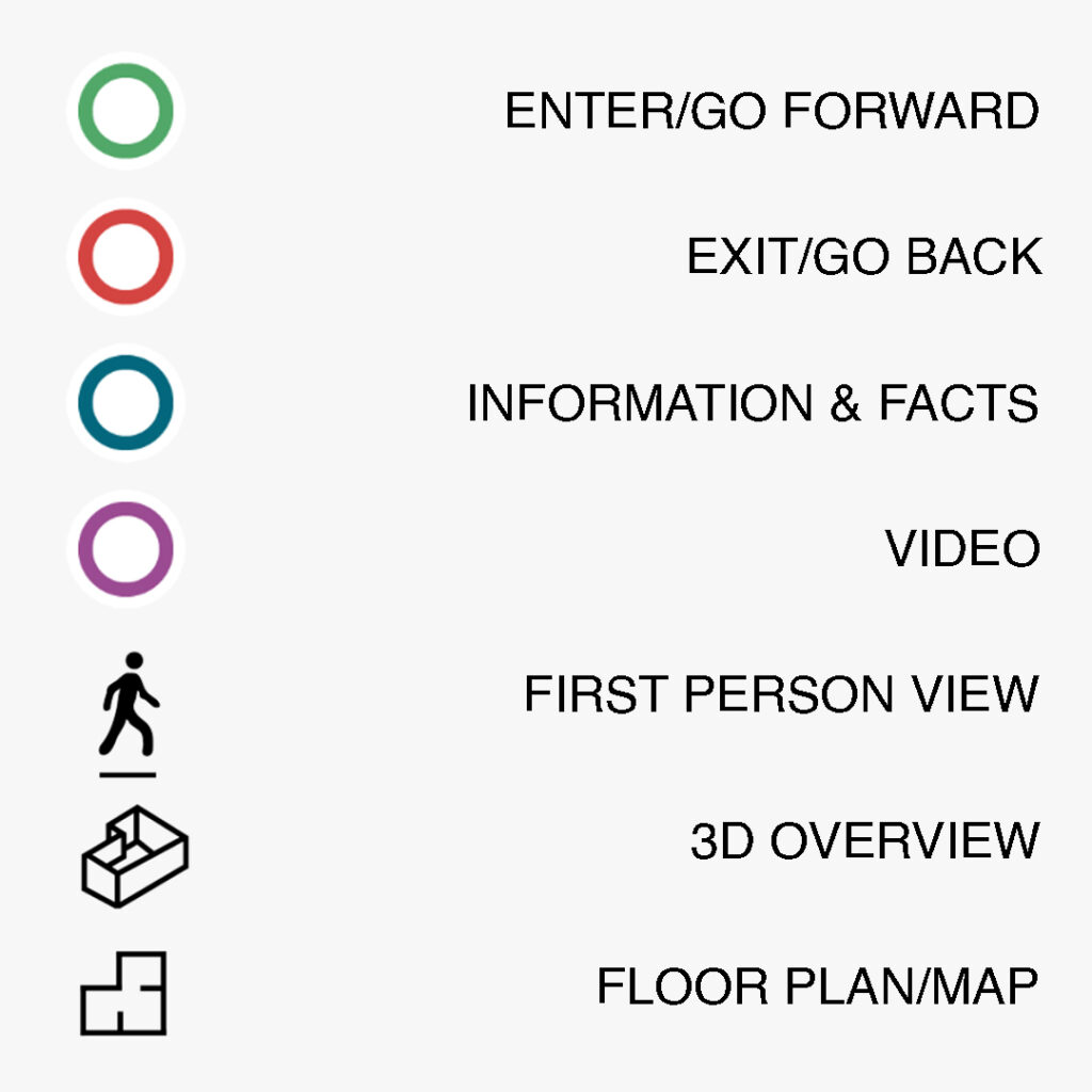Green dots will take you to the next step in the process or inside of a building. Red dots will take you back in the process or out of a building you’ve entered. Blue dots contain information about what you’re seeing. Purple dots are brief videos about the process you’re looking at. If you get turned around or lost, just click or tap the icons in the lower left-hand corner to change your view of the plant.